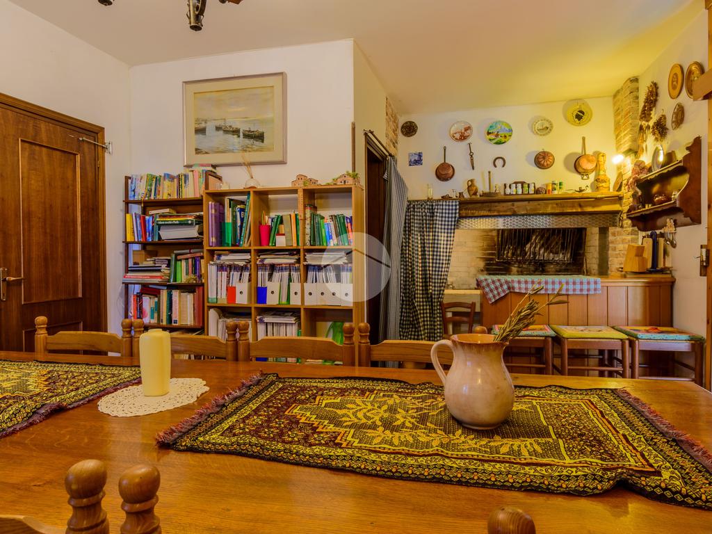 Tramite una scalinata interna accediamo al piano terra dove troviamo un'ampia taverna con camino, una terza camera da letto con bagno finestrato, una cantina ed un locale tecnico.